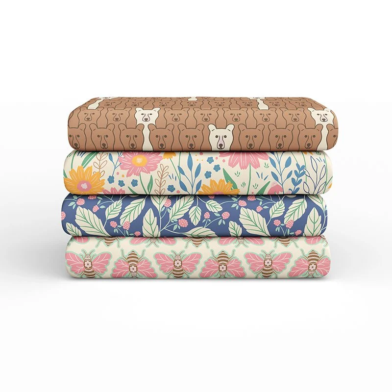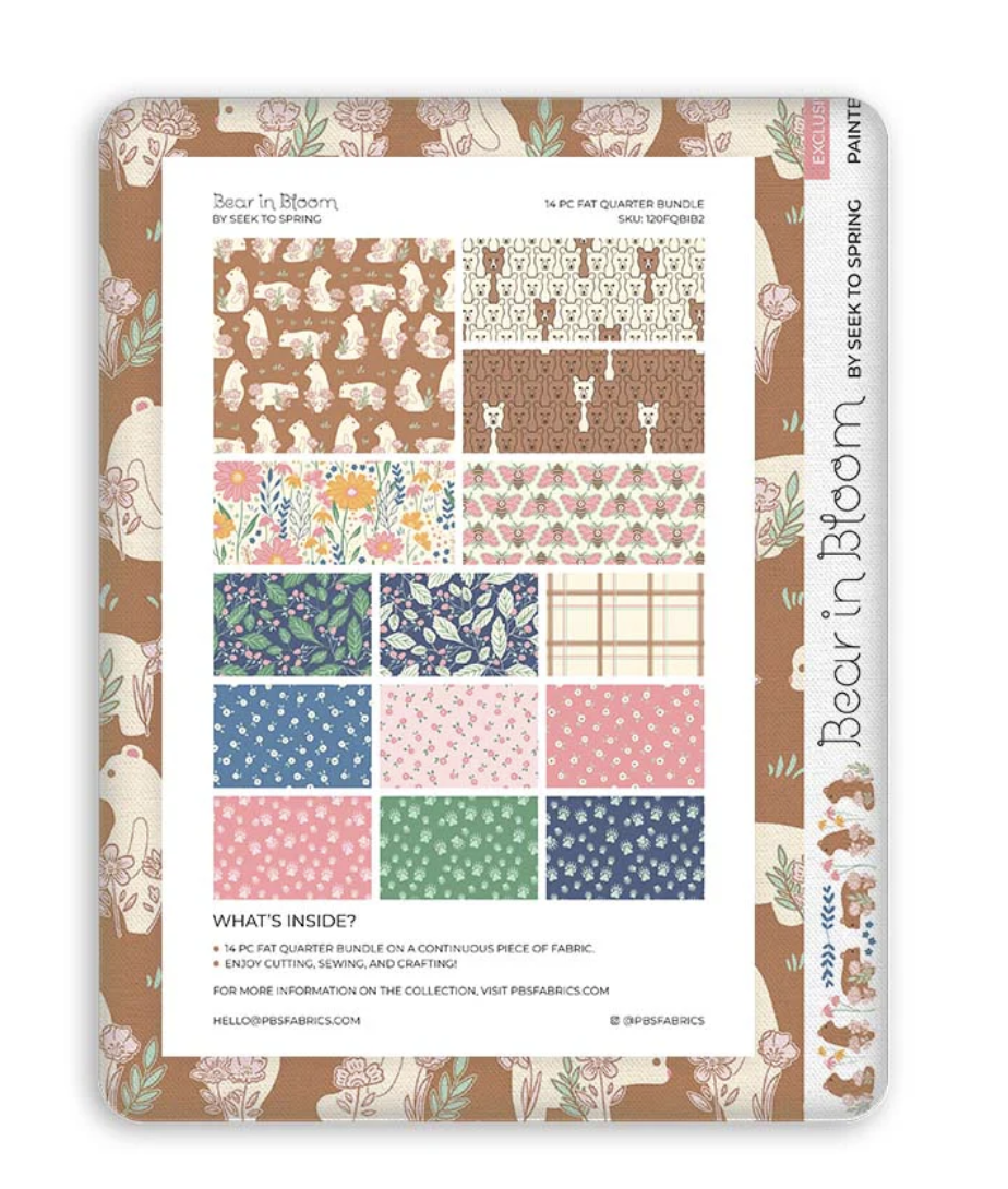 Bumble bees, berry picking, basket weaves, and of course, bears! Bear in Bloom brings together a collection of designs intended to share the sweet and light-hearted nature of our furry woodland friends and the botanical habitat they call home.